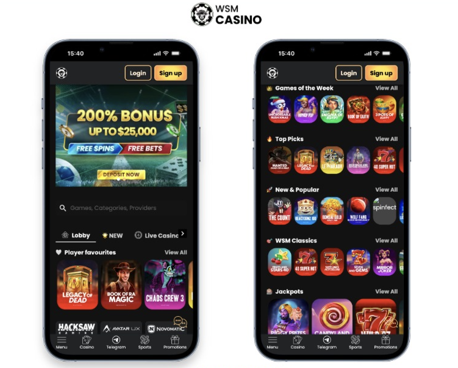 9. WSM Casino – Levantamentos Velozes com Jogos de Grandes Estúdios